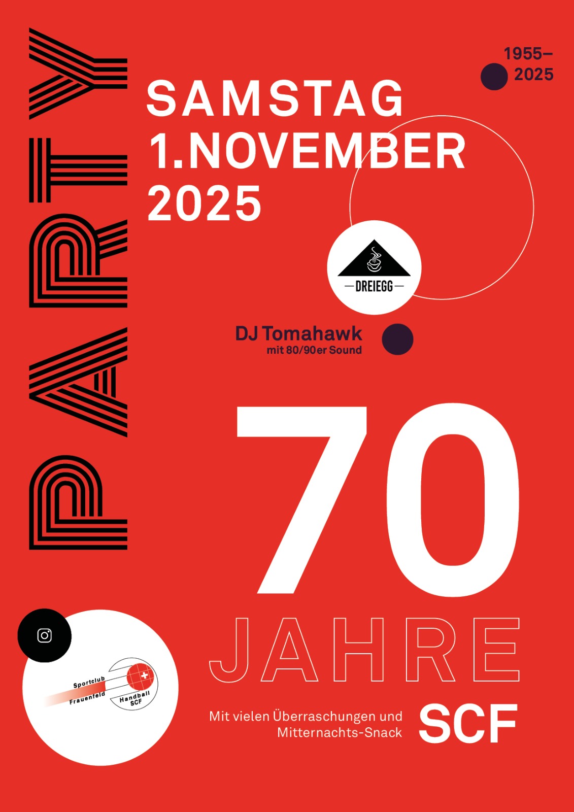 Am 01.Novemver 2025 feiert der SCF 70-jähriges Jubiläum mit einer fetten Sause bei uns im Dreiegg.